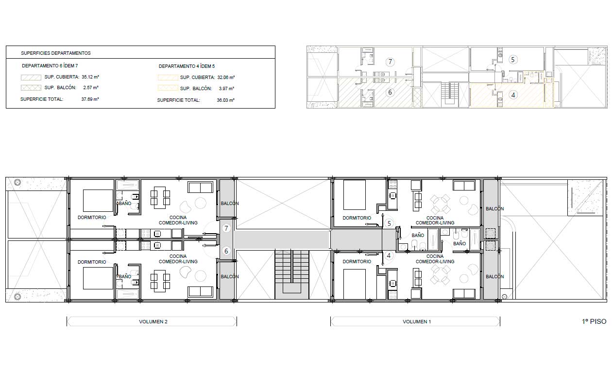 Cada departamento ha sido diseñado con un concepto moderno de living cocina comedor integrados, ofreciendo espacios amplios y funcionales. Disfruta de un dormitorio confortable y un baño completo.