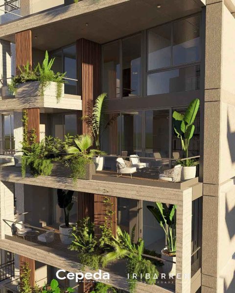 - Balcones aterrazados con parrillas individuales.