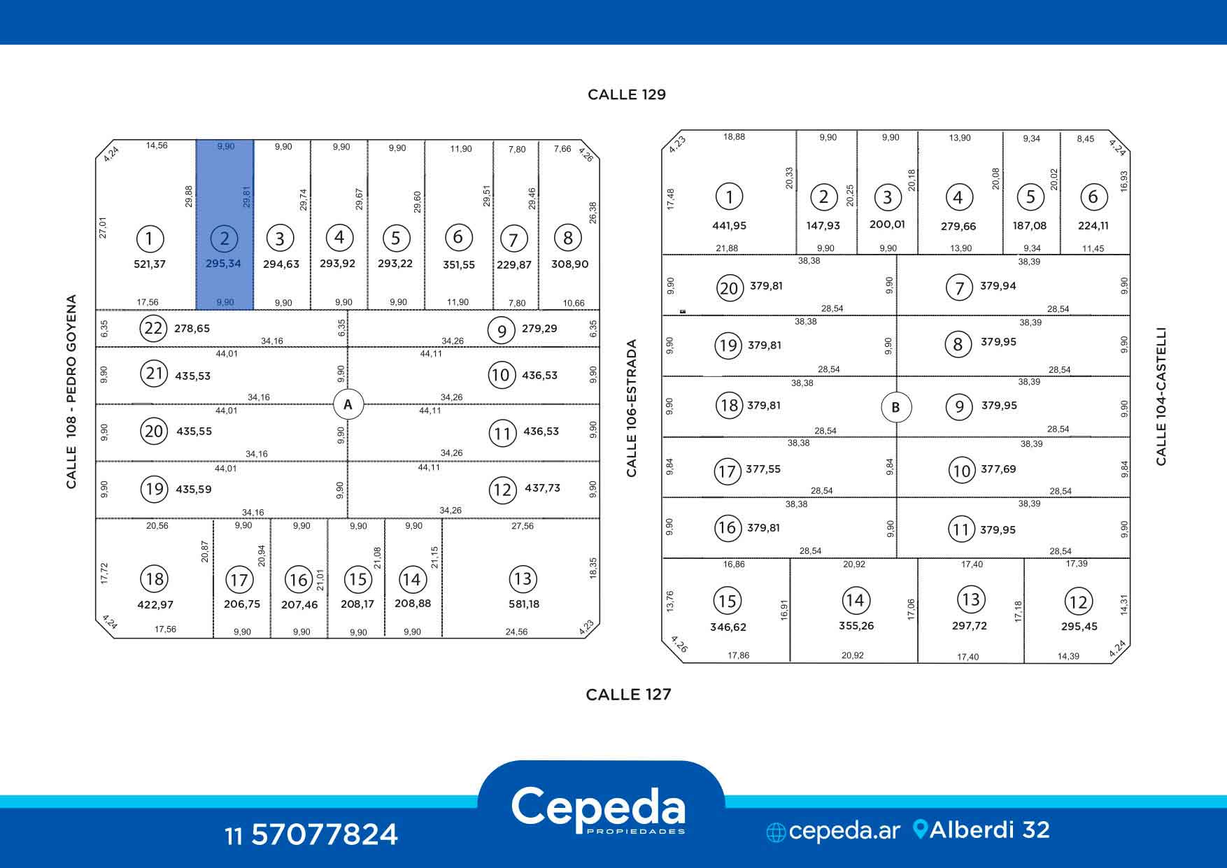 Este lote con financiación se encuentra ubicado en Calle 129, entre Goyena y Estrada, dentro del tranquilo y residencial Barrio Los Frutales.