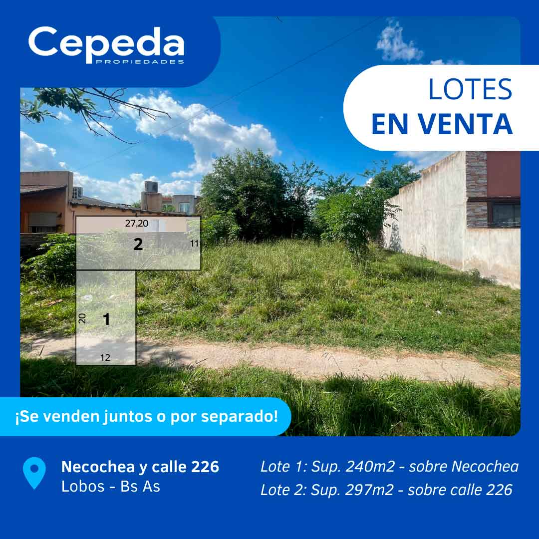 Excelente ubicación en calle Necochea y calle 226. Dos lotes con posibilidad de adquirirlos juntos o por separado.