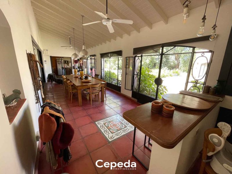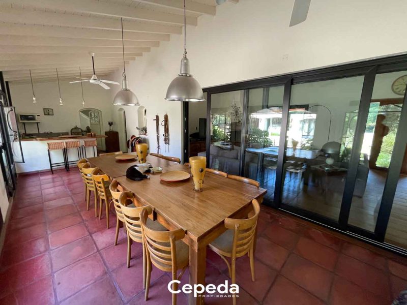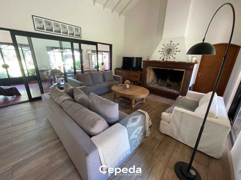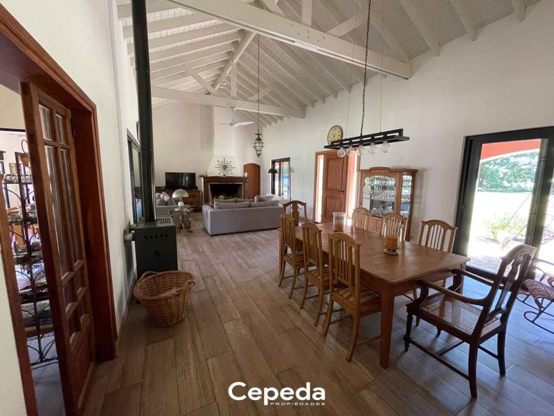 - Espacioso living comedor: cuenta con hogar y tromen. Ventilador de techo, pisos de porcelanato, techo de madera, aire acondicionados.