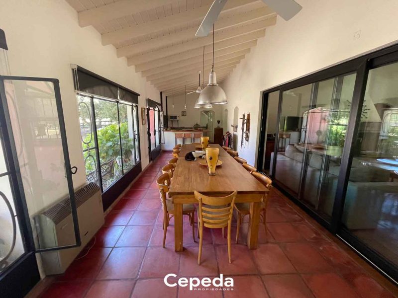 - Galería trasera totalmente cerrada con parrilla, barra, mesada, bacha y espacio de guardado. Cuenta con calefactor y ventiladores de techo.