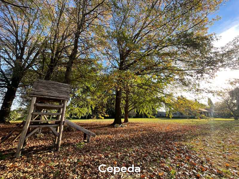 Terreno: 2.8 hectáreas con casa principal, piscina, quinchos y amplios espacios verdes forestados con árboles añejos, de gran porte como alcanfores, fresnos, eucaliptus y robles.